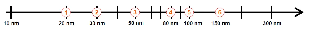 図1. 様々な粒子径を有するコロイド状炭酸カルシウム.